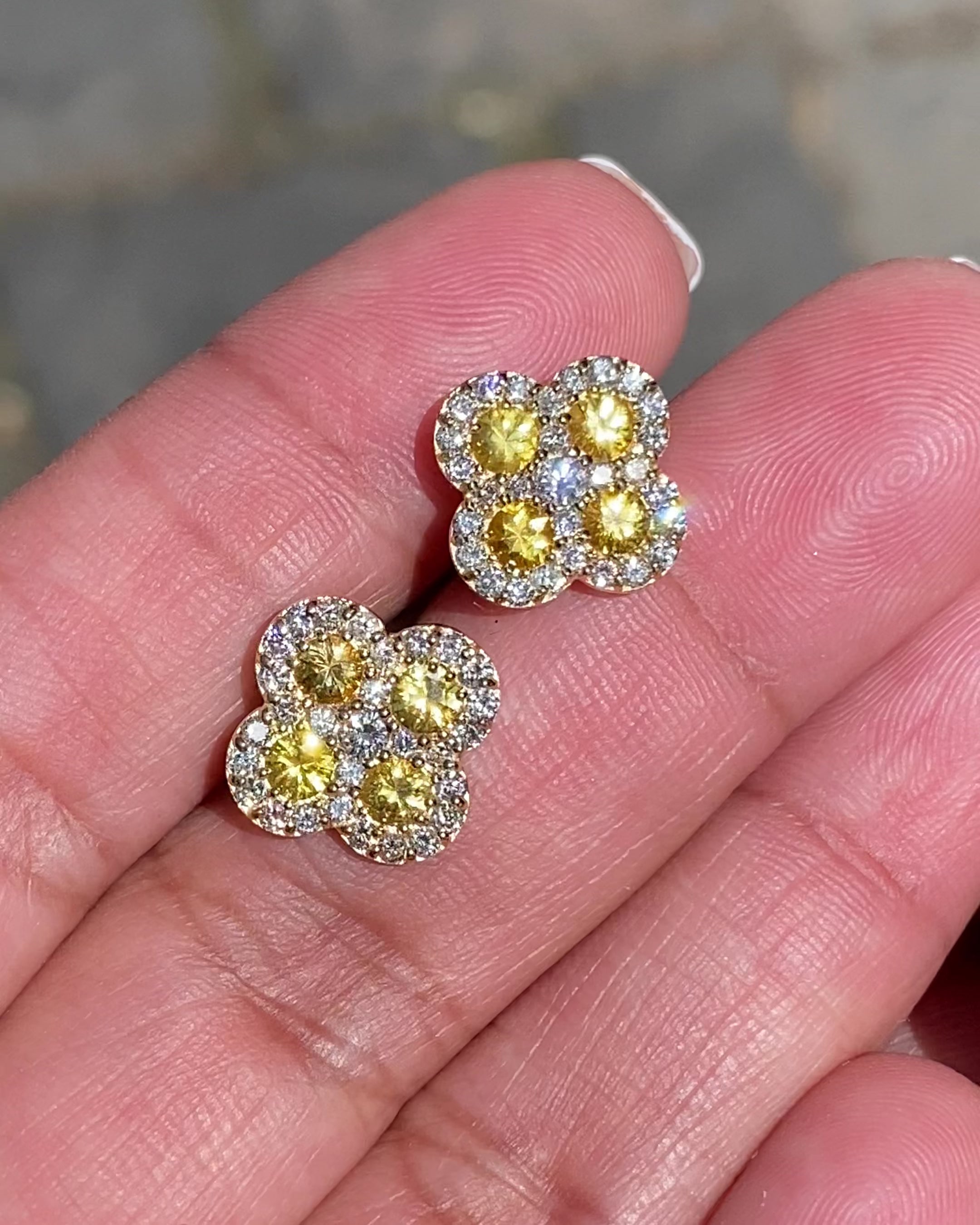 Yellow Sapphire Diamond Clover Earrings 18k Gold
